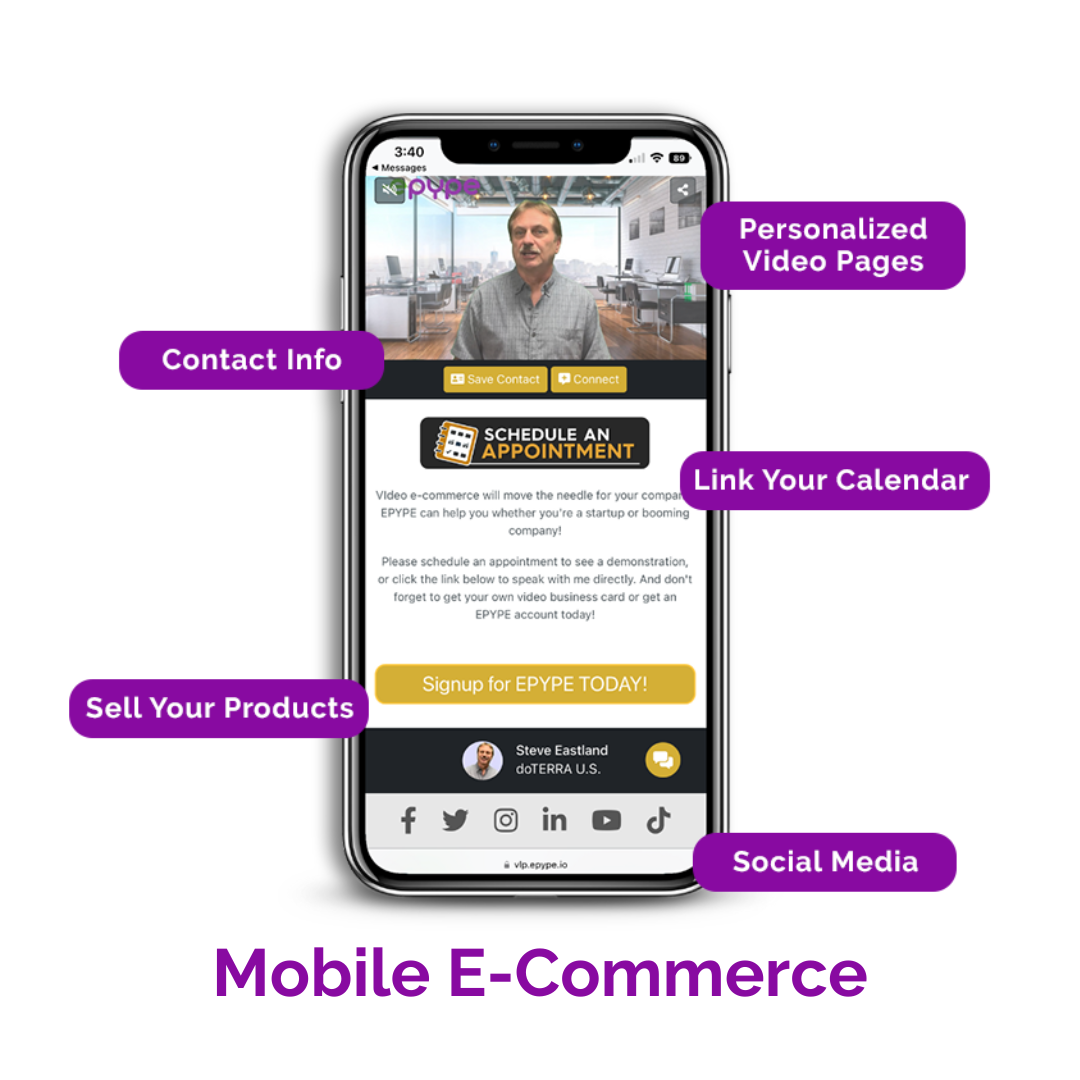 EPYPE is a simple, fast and effective way to CREATE Mobile Video Pages that help you SELL more product and services. Using Video will CONVERT higher than other methods and the Product and Payment integrations will make the Mobile COMMERCE Experience much better for your customers.