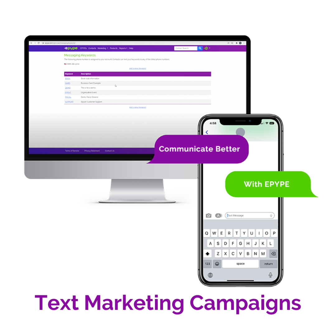EPYPE provides marketing, commerce, and communication tools that bridge across several types of tools and industries. We combine the best elements of digital business cards, text marketing, mobile video commerce, contact management, analytic reporting, and targeted campaign management.